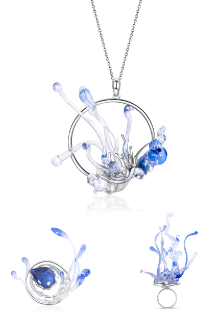 基于蠶絲的哲學意象,將未經雕琢的蠶絲通過設計抽象成充滿神秘美感又朦朧輕盈的仿生首飾,激發人們對充滿奧秘的生物世界的探索。