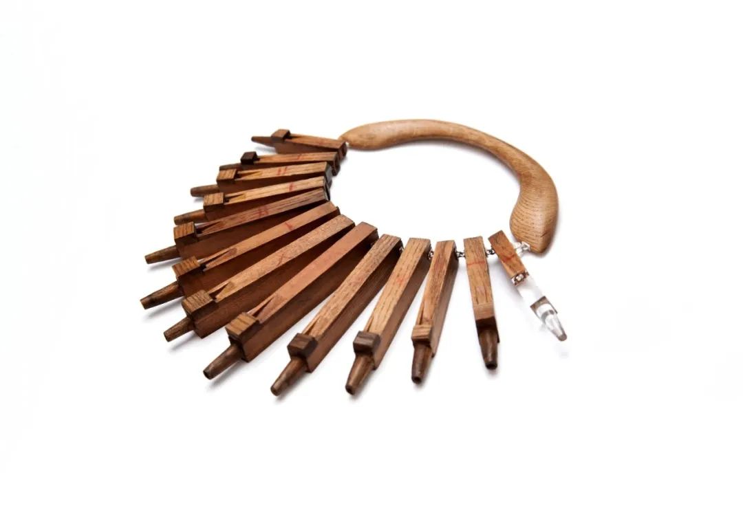 愛沙尼亞珠寶商 Tanel Veenre 居住在塔林,是一位浪漫主義者。童話和儀式往往是主題,他的珠寶既是裝飾品,又是神秘的護身符。他對音樂的熱情(來自藝術家和音樂家的家庭)表現在他在舊作品中使用小提琴琴橋和調音栓作為設計元素,這一主題在《BeforeAfter》中得到了進一步發展,因為木制風琴管構成了他的作品的物質基礎。最新作品——轉化為表演性作品,如呼吸的空氣可以使裝飾產生音調。