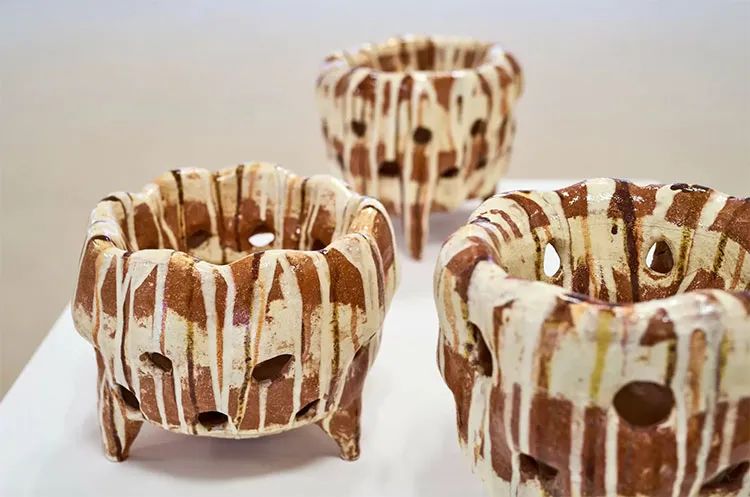 Marit Tingleff 的作品富有表現(xiàn)力,具有強烈的裝飾性特征和起伏的有機線條。重力決定了釉底在表面流動的方向,因為在涂抹過程中盤子和瓷磚會被抬起。重復(fù)節(jié)奏的垂直線條表明這種動作是沖動的,但技術(shù)嫻熟。她對彩色釉料的繪畫應(yīng)用參考了自然、陸地和海景,盡管上釉和燒制的過程很復(fù)雜,但她仍然保持著令人難以置信的自發(fā)感,平衡了明暗、圖案和空白區(qū)域,同時嘗試了不同的標記制作方式。