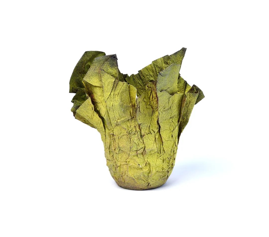 她的容器是對形狀、空間和空虛之間相互作用的令人回味的反思——每一件獨特的作品都是手工鍛造的,證明了迪特曼對金屬的精通和永恒的技巧。有些看起來好像浸入火山熔巖后仍處于熔融狀態(tài),或者因漏油而滑溜溜的。另一些看起來好像巧克力櫻桃的皺巴巴的紅色箔片被巧妙地打開,并在珍貴的糖果從包裝紙中取出后完好無損。在所有情況下,精致的表面都掩蓋了堅固的金屬形狀。雖然大部分都是空氣,但就連空氣本身也不得不承認它被精心包裹著。