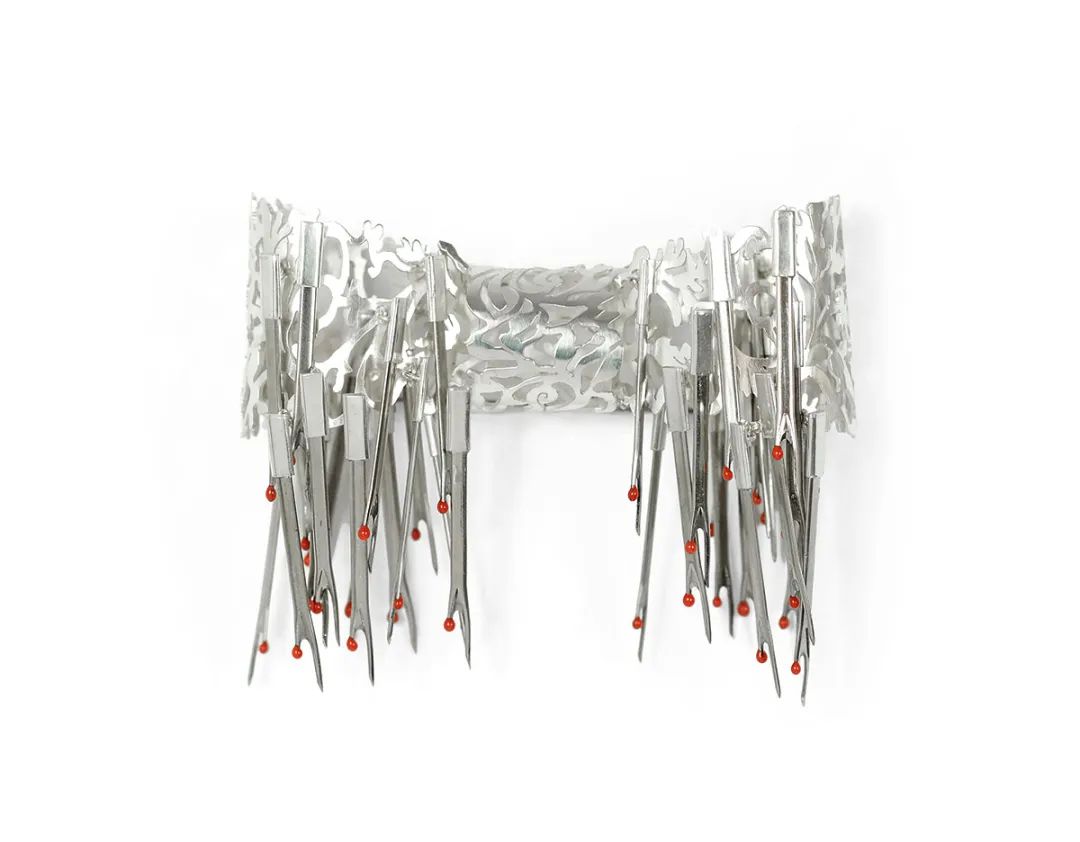 Ebendorf 的作品融合了通過傳統(tǒng)的金銀制作培訓(xùn)獲得的卓越工藝,以及對現(xiàn)有物品和其他替代材料(如丙烯酸和 ColorCore)的創(chuàng)造性使用。