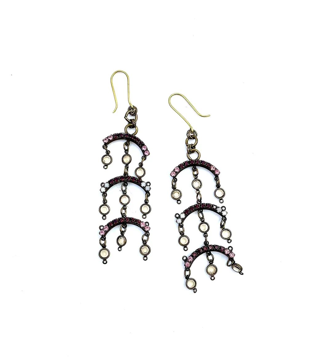 我使用了捐贈的材料,從耳環(huán)單件到破損的耳環(huán)、人造珍珠和未知材質(zhì)的珠子、帶水鉆的人造珠寶、純銀和 14k 金不想要的物品。我創(chuàng)作的一些作品更為激進(例如 Drippy 項鏈),而有些則更為虔誠和傳統(tǒng)(Orphan 吊墜項鏈)。其中一件作品與我的鋼和金作品有關(guān)(甜美的金色 Paperchain Cluster 耳釘),但大多數(shù)作品的靈感都來自我手頭材料中看到的東西。我借鑒了我的銀匠培訓(xùn)(Salamander 項鏈)、我的設(shè)計教育(使用不同的材料),并學(xué)習了一種新的打結(jié)技術(shù)。感覺就像一個充滿不斷探索和實驗的駐地,我將把這些探索和實驗帶到未來的新作品中。