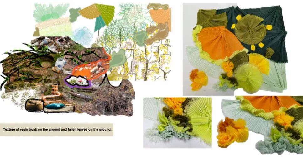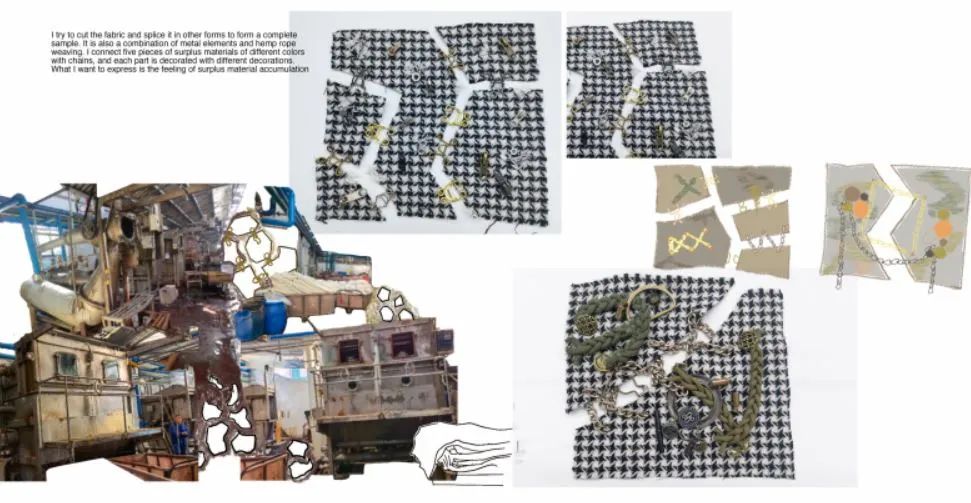 其實(shí)對(duì)我來(lái)說(shuō),做research和拼貼是最難的。做sample以及材料的選擇和運(yùn)用我還是比較在行的。但拼貼因?yàn)橹皼](méi)做過(guò),比較生疏,還是葉老師一步一步教我的。葉老師真的教了我很多,還教我怎么用Procreate,給我示范畫(huà)草圖,做拼貼,立裁,打版,做樣衣,帶著我捋思路等等等等,就差握著我的手幫我做了!啊哈哈哈。面試前葉老師也幫我改了好多次稿子,有個(gè)七八九個(gè)版本了,特別耐心。