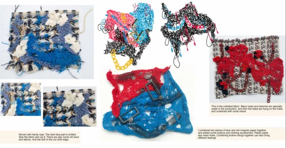 但是在服裝設(shè)計(jì)的預(yù)科學(xué)習(xí)中,我發(fā)現(xiàn)自己很喜歡面料改造這一個(gè)小part。我的動(dòng)手能力比較強(qiáng),本來(lái)就喜歡做一些奇奇怪怪的手工和實(shí)驗(yàn),所以覺(jué)得做面改就像玩一樣,愿意去嘗試很多方式,實(shí)驗(yàn)很多次也不會(huì)覺(jué)得煩,我覺(jué)得面料設(shè)計(jì)非常非常適合我,也可能這就是熱愛(ài)吧,啊哈哈哈。