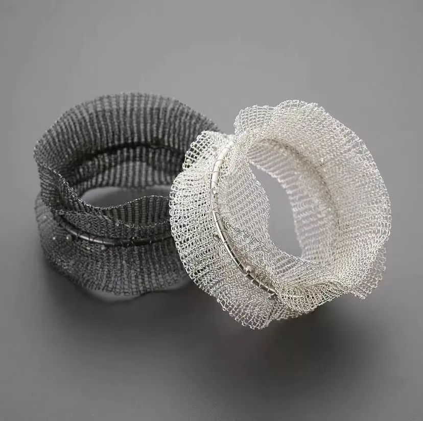 金屬編織工藝操作技巧簡單,編織技法的人為操作性、自由性強,在現代首飾設計中,不同的編織材料彎曲與拉伸度也不同,材料應變性能良好,能夠適應不同的編織技法,制作出多種造型。