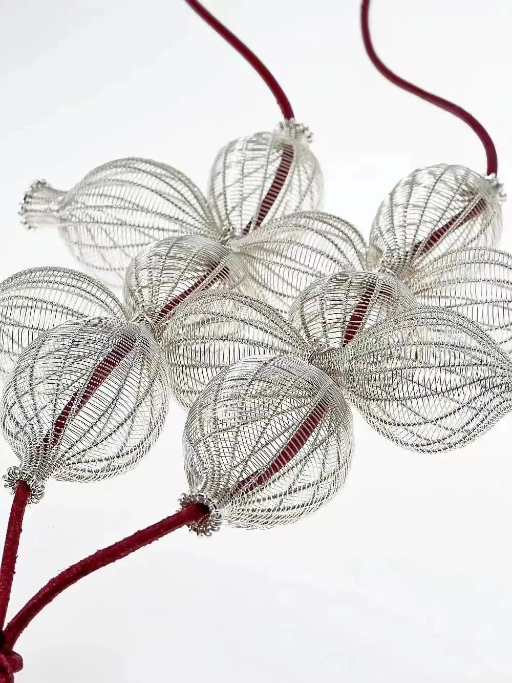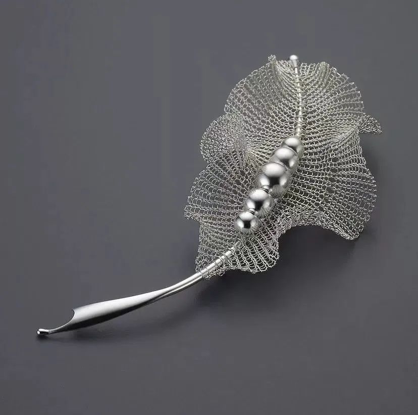 通透柔軟的銀絲,如果實如嫩芽、舒展自然,一如生命脆弱而堅毅;經緯線的排列和纏繞,勾勒出形體的輪廓。今天就帶領大家體驗首飾藝術家運用金屬編織幻化出的虛實空間,以及分享一些金屬編織常用的工具和技法~