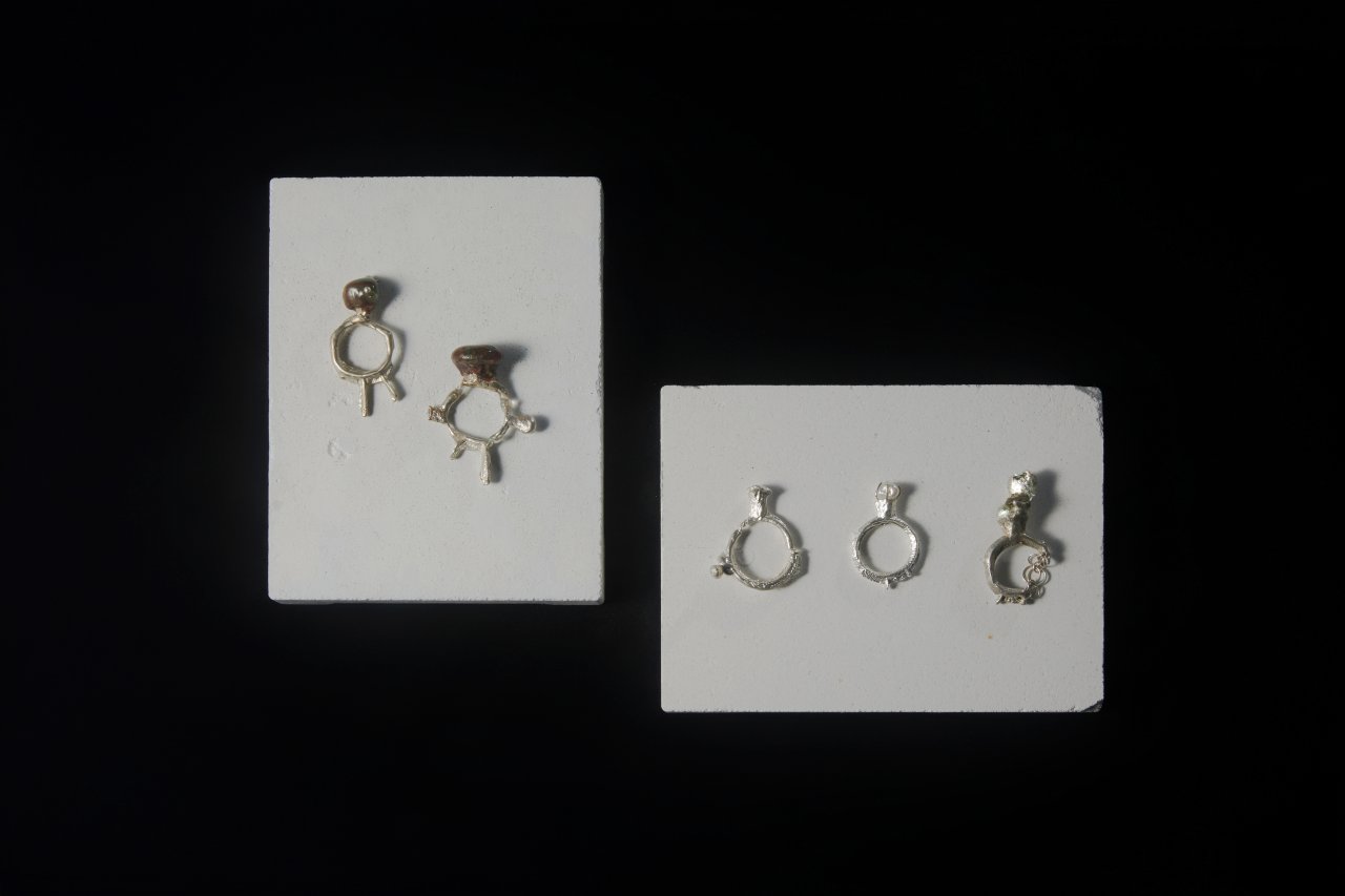 <A Ring is a Ring is a Ring> is a series of works in which not only the final outcomes are valued, but also the byproducts throughout the process. Together they represent how I view and create artwork as a jewellery artist with ADHD. By using the cuttlefish casting method, I have deliberately created a procedure containing numerous random factors, that required me to repeat the same process over and over again. Since the outline of the shape will fray and distort under high temperatures, copious amounts of cuttlefish sets were needed for more casting attempts. Through this repetition, my attention span would easily run out, thus causing the deformation of the ring shape while carving it out and accidental slips during the casting. All these “accidents” and “mistakes” have been collected and preserved. It is then, left to me to decide on how to do with them.