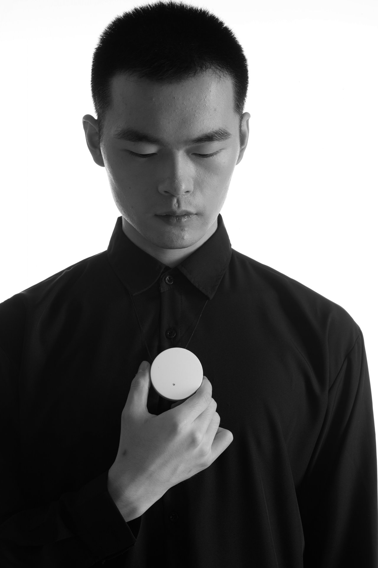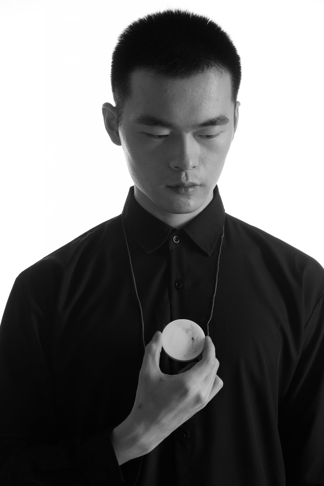 作品《痕跡》紀(jì)念了我一位去世的美術(shù)老師。在我對繪畫一無所知的時候,他帶我了解了什么是美術(shù),從此美術(shù)成為了陪伴我至今的興趣,我將他對我的教導(dǎo)一直銘記于心。因此我選擇了畫室里常見的元素:石膏、鉛筆作為我的主要材料。圓形的石膏來源于素描練習(xí)中基礎(chǔ)的球形石膏,埋在明暗交界線的鉛芯會隨著佩戴者的摩擦不斷留下素描般的痕跡,逐漸使圓形石膏顯得立體,石膏與鉛芯留下的痕跡分別表現(xiàn)曾經(jīng)對美術(shù)一無所知的我和老師對我的教導(dǎo)。以此來懷念曾經(jīng)與老師在課堂上的時光。