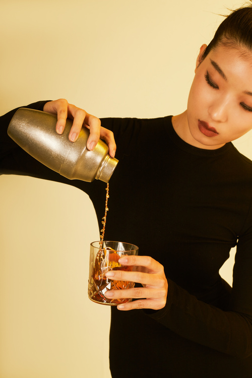 我的愛好之一是品嘗與調制雞尾酒。在喝酒和調酒的過程中,酒液往往處于不穩定的狀態,欣賞透明的酒液流動的場景,是調酒帶給我除了美味之外的另一種享受。作為一名首飾設計師,我將酒液飛濺的瞬間定格,并將其設計成首飾架和配套首飾。