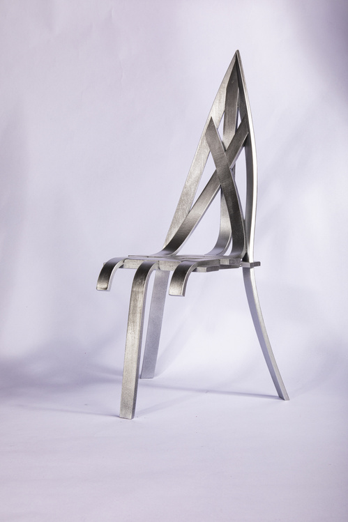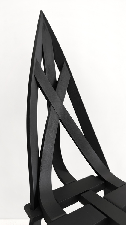 在另一件設(shè)計(jì)作品《AIX椅》中,設(shè)計(jì)的側(cè)重是在表達(dá)我的個(gè)人審美以及設(shè)計(jì)風(fēng)格。這把椅子尖銳,線條簡(jiǎn)潔,而且結(jié)構(gòu)并不復(fù)雜,只由幾種簡(jiǎn)單的零件組成。同時(shí)這把椅子也包含了我對(duì)現(xiàn)代椅子及中西設(shè)計(jì)的理解。
