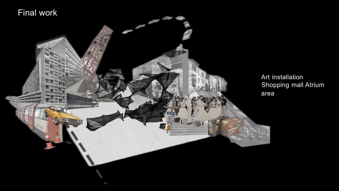預科期間的第一個項目《soft space》的設計靈感來自于鹽田千春作品中對于的網和線使用。作為初學者我通過手部動作和絲網的翻折拉伸建立了對空間和建筑骨架的理解。通過模型構想了一個綜合商業中心中庭區域的藝術的裝置我希望他可以兼具實用性和觀賞性,因此我將他的一部分設計成:可一些不規則形狀的長凳,而后方空間設計為行走通道,體現了我在模型制作期間對包裹這一視覺語言的運