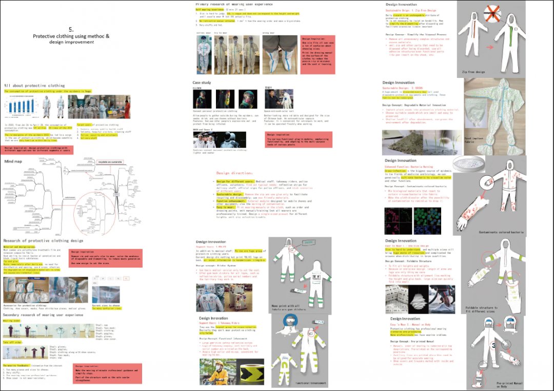 As a future product designer, my understanding of this major is how creating a good product can use much more conveniently and shows respect for a good design. At the same time, I think we should consider the material cost much more carefully. I hope to use it to produce better works with the least consumption, and to provide clear comprehension. For example, "Protective clothing using method and design improvement " is about some design improvements to epidemic protective clothing. The complex wearing process of protective clothing needs to be simplified. And then the different sizes and basic functions are not fully utilized, so I propose new ideas for these existing problems. Including improving its environmental protection, preparing more easily adjustable design for people of different physiques, or adding reflective strips for takeaway deliverymen and police officers who work at night.