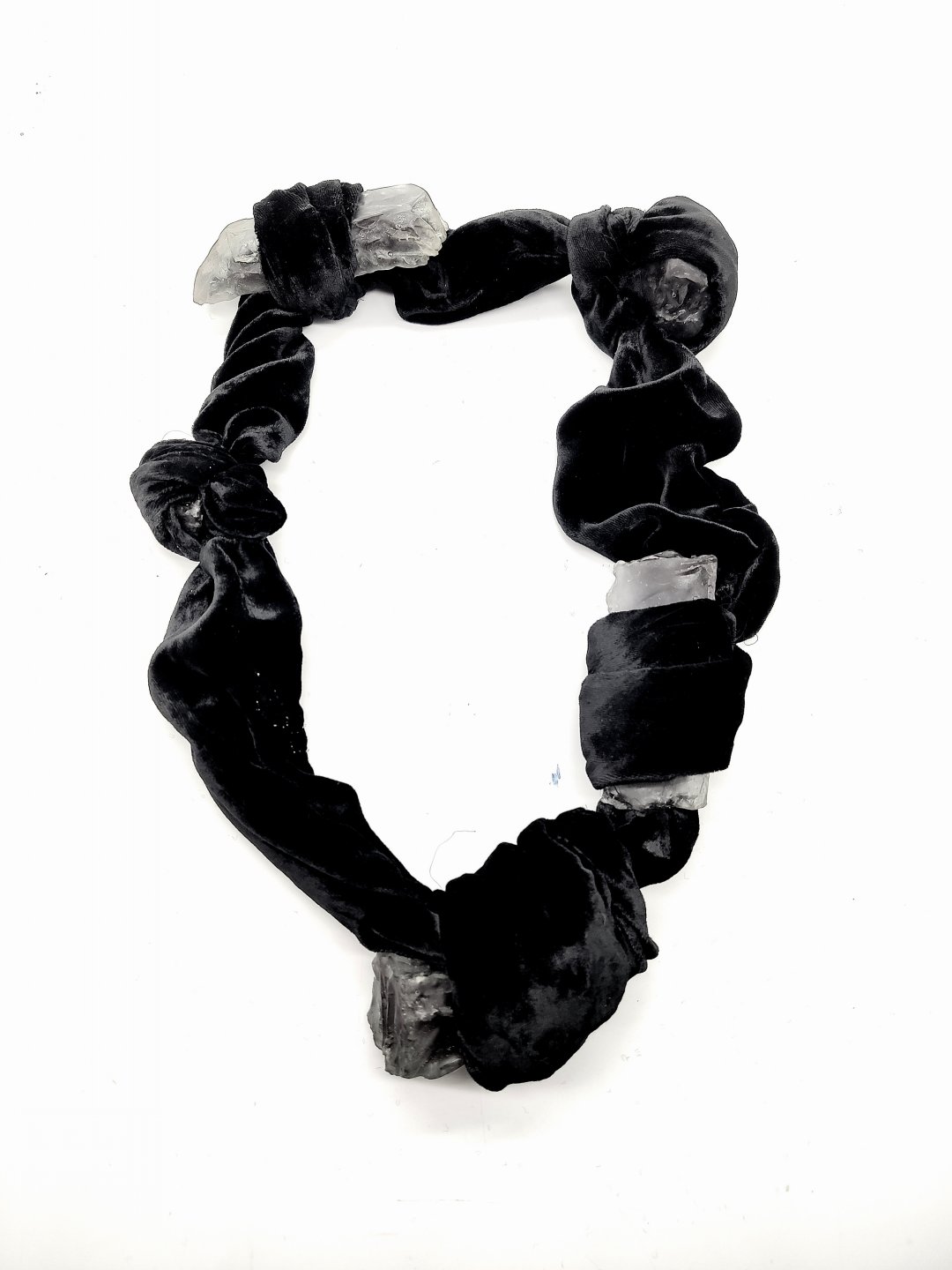 Black II Necklace UV Glue, Velvet Cloth, Gold Thread, Acrylic size: 41*32cm 黑II 項鏈 UV膠,天鵝絨布,金線,亞克力 41*23厘米;